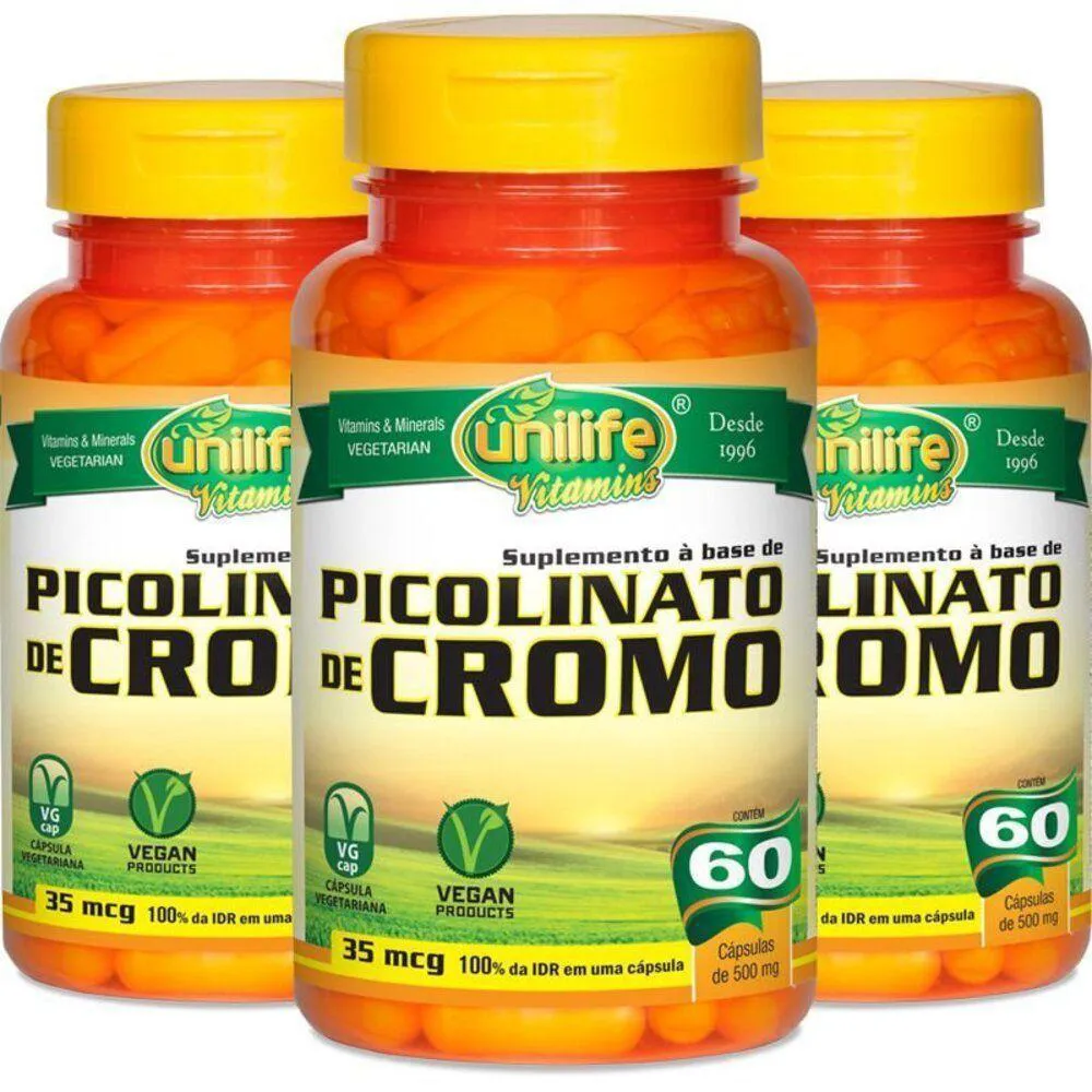 Kit 3 Picolinato De Cromo Unilife 60 Cápsulas
