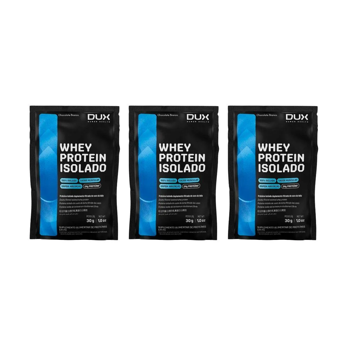 Kit 3 Sache Whey Protein 24G Proteina Isolado Puro Chocolate Branco Dux