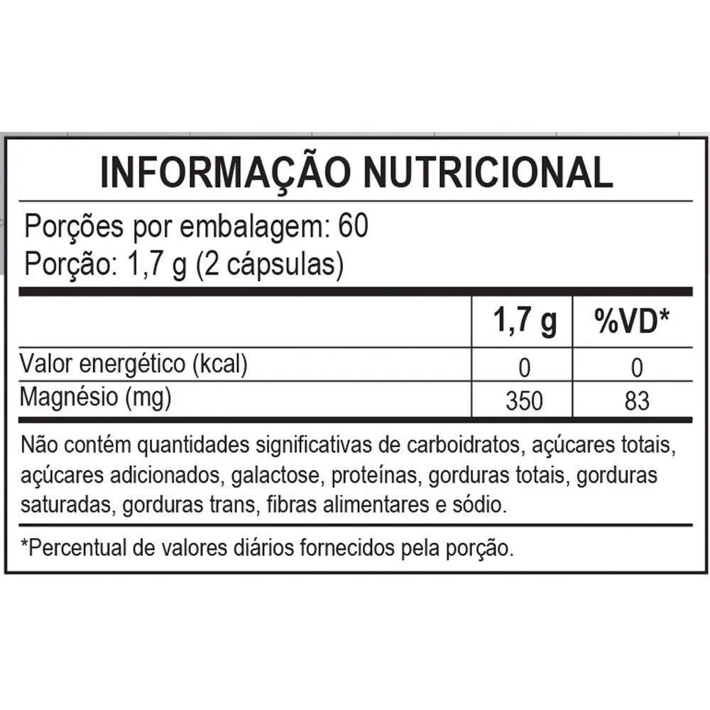 - Suplemento de magnésio em cápsulas vegetais.