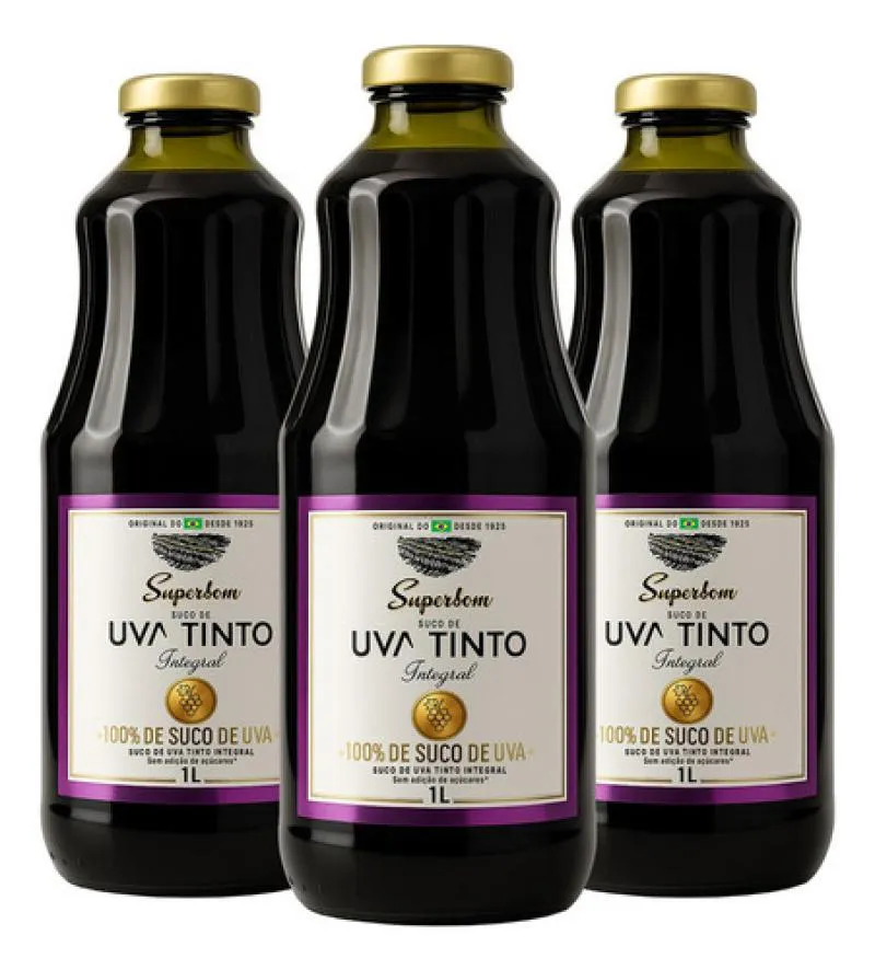 Kit 3 Suco de Uva Tinto Integral 1L - Superbom