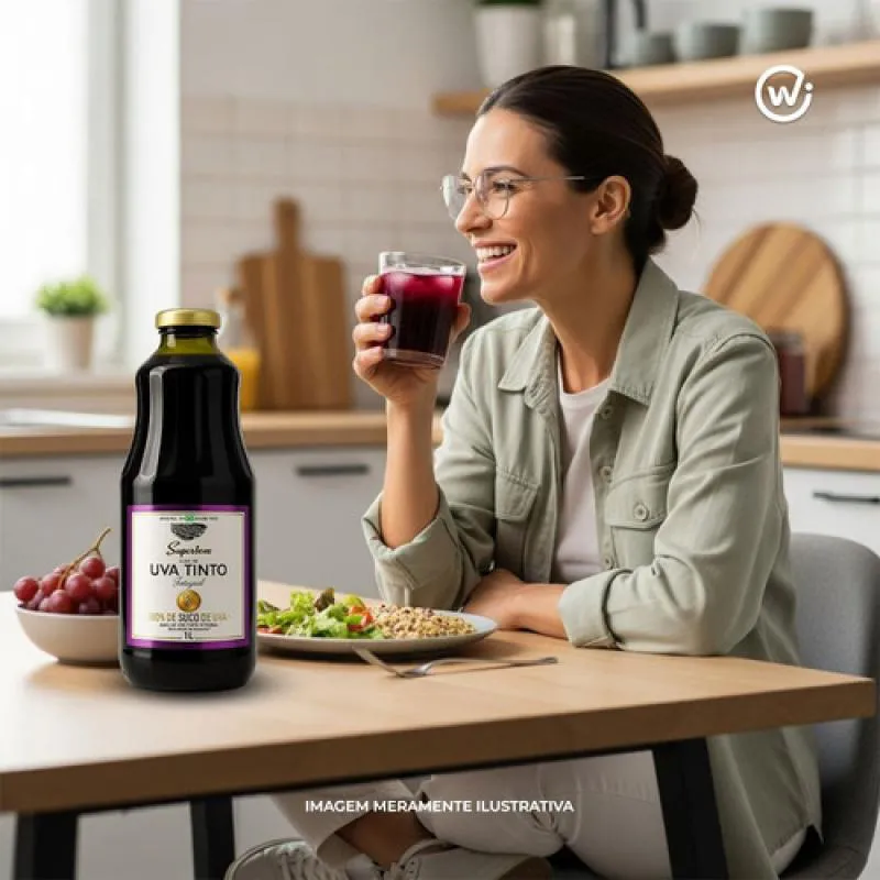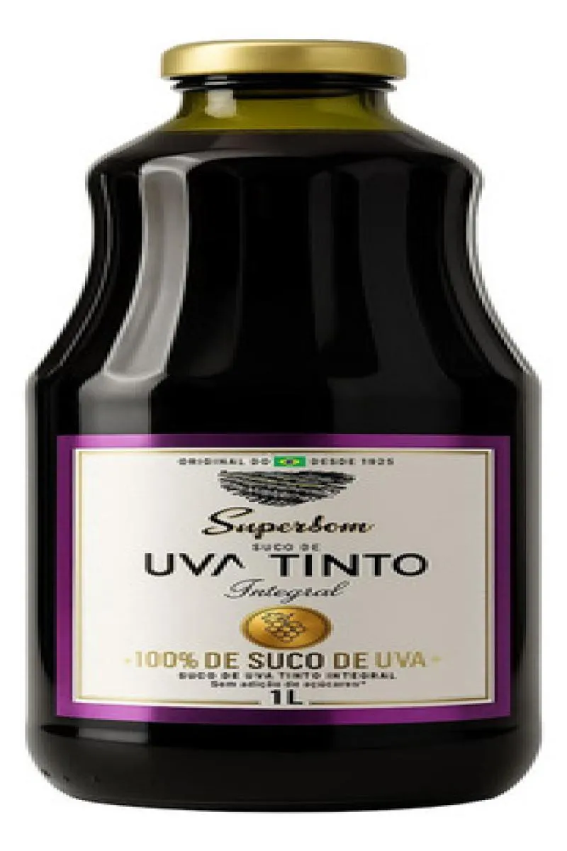 O Suco de Uva Tinto Integral Superbom é elaborado com 100% de uva‑Isabel, mantendo a fruta em sua forma integral e sem adição de açúcares ou conservantes.