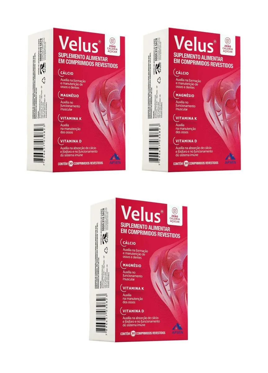 Kit 3 Suplemento Apsen Velus Cálcio Magnésio Vitamina 30cps