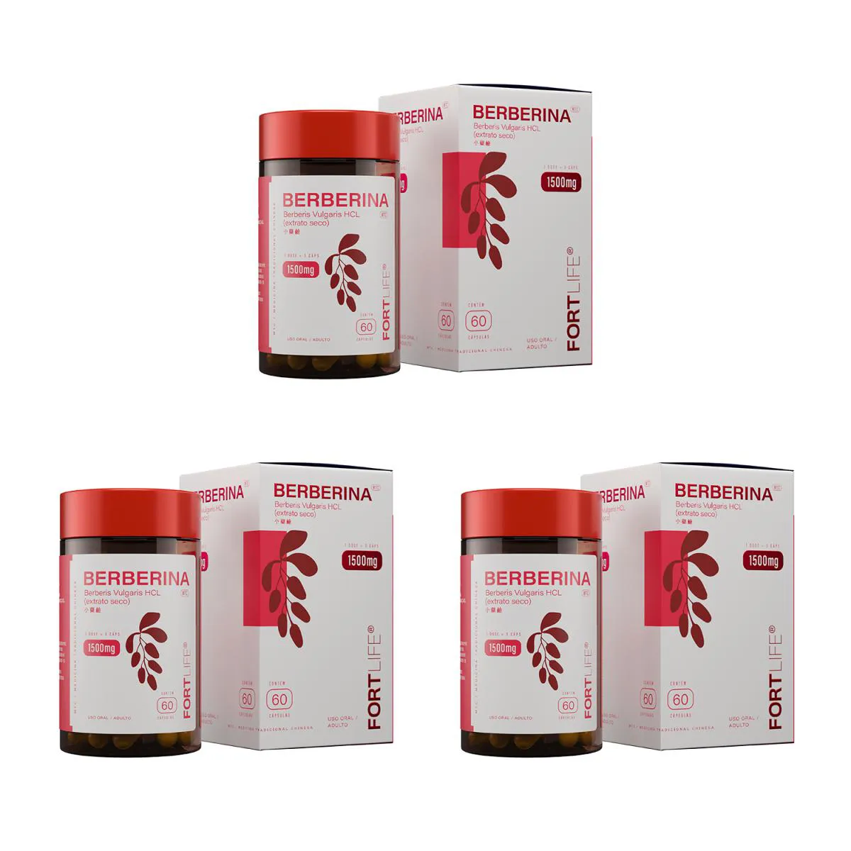 Kit 3 Und Berberina Hcl 1500Mg 60 Cápsulas Fortlife