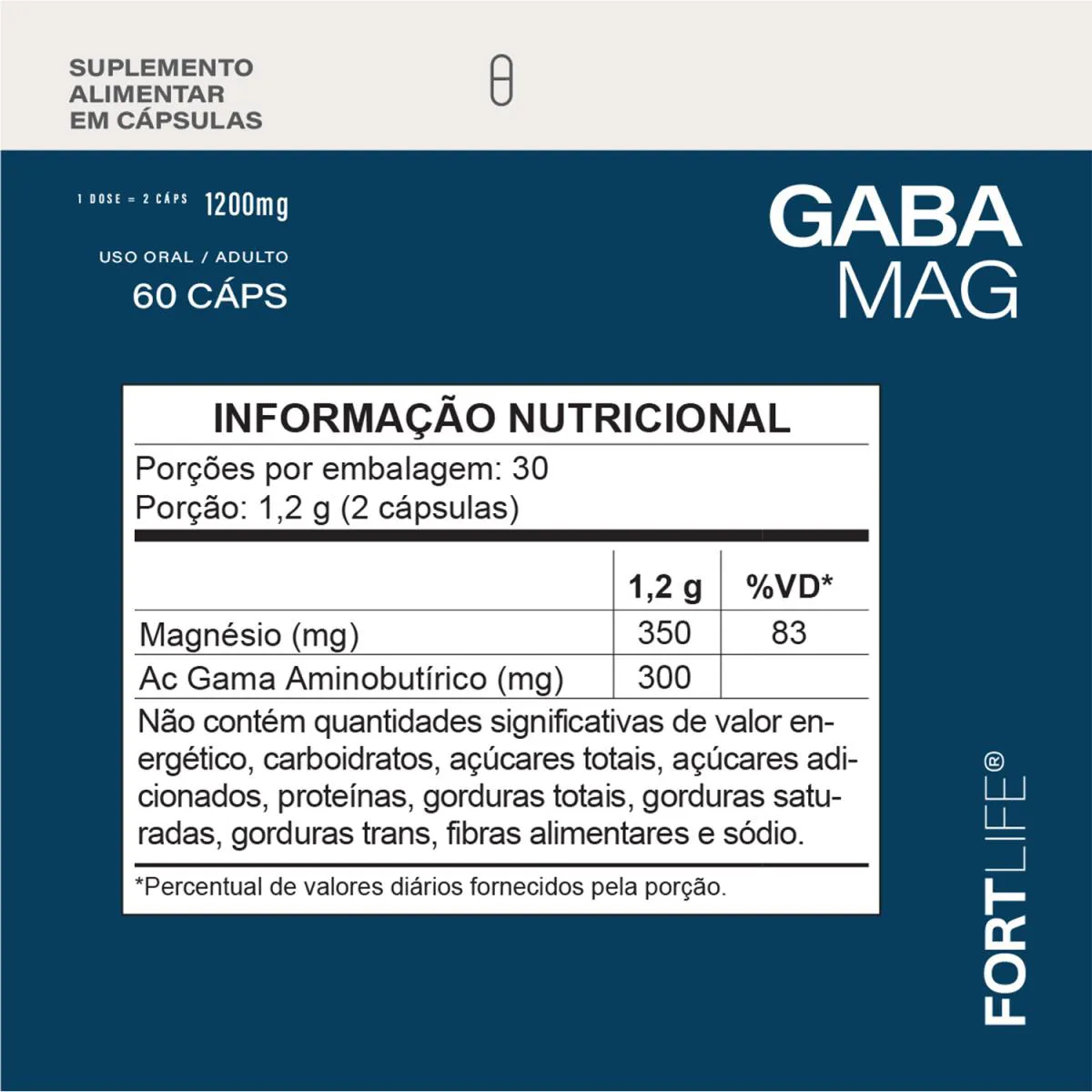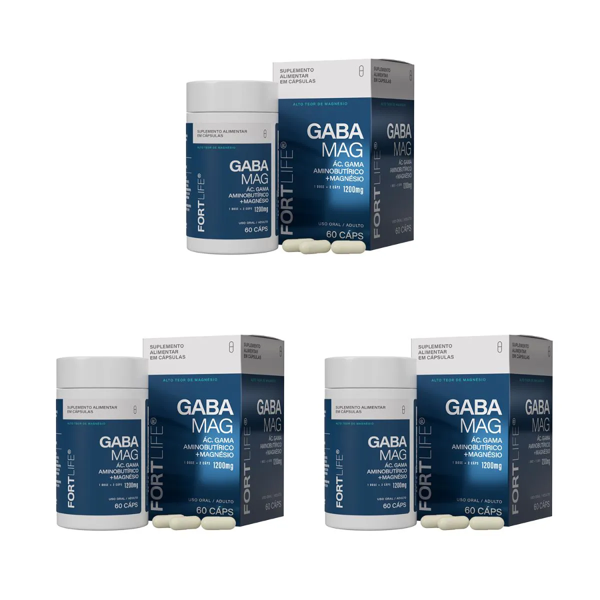 Kit 3 Und Gabamag (Ácido Gama Aminobutírico + Magnésio) 1200Mg 60 Cápsulas Fortlife