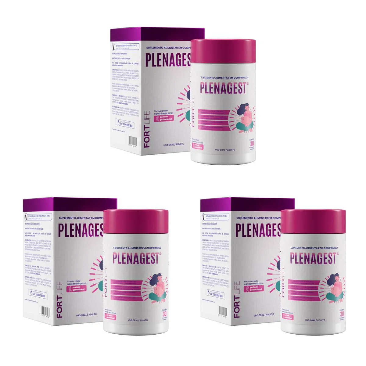 Kit 3 Und Plenagest (Gestante) 30 Comprimidos Fortlife