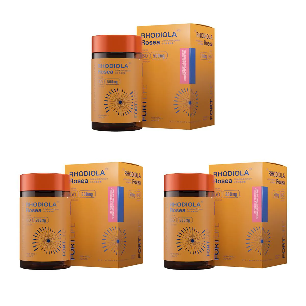 Kit 3 Und Rho Diola Rosea 500Mg 60 Cápsulas Fortlife
