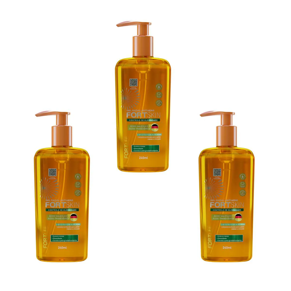 Kit 3 Und Sabonete Gel Facial Oil Control Fortskin 240Ml Fortlife