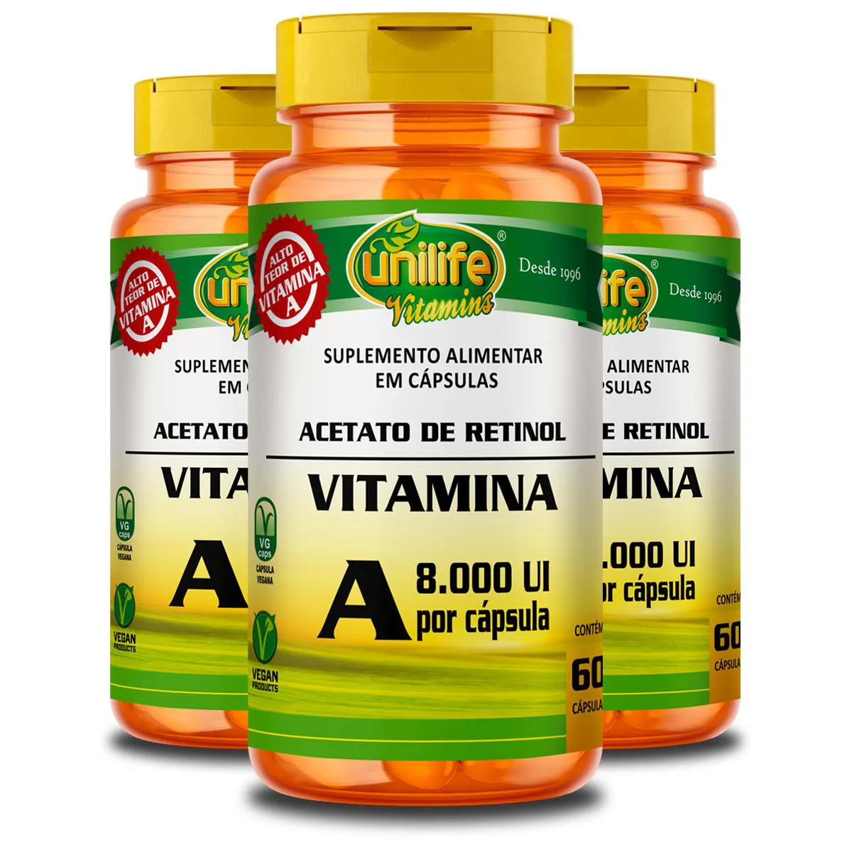 Kit 3 Vitamina a Retinol Unilife 60 Cápsulas