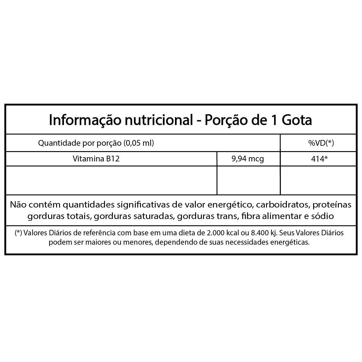 Cada porção de 0,5 ml (1 gota) contém 2,4 mcg de Vitamina B12, correspondendo a 100% da necessidade diária recomendada. Armazenamento