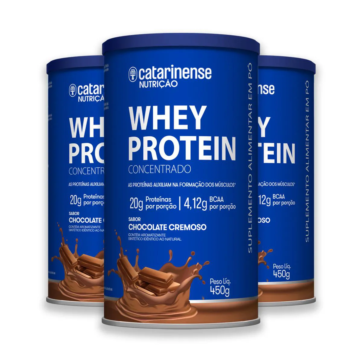 Kit 3 Whey Protein Concentrado Catarinense 450G Chocolate