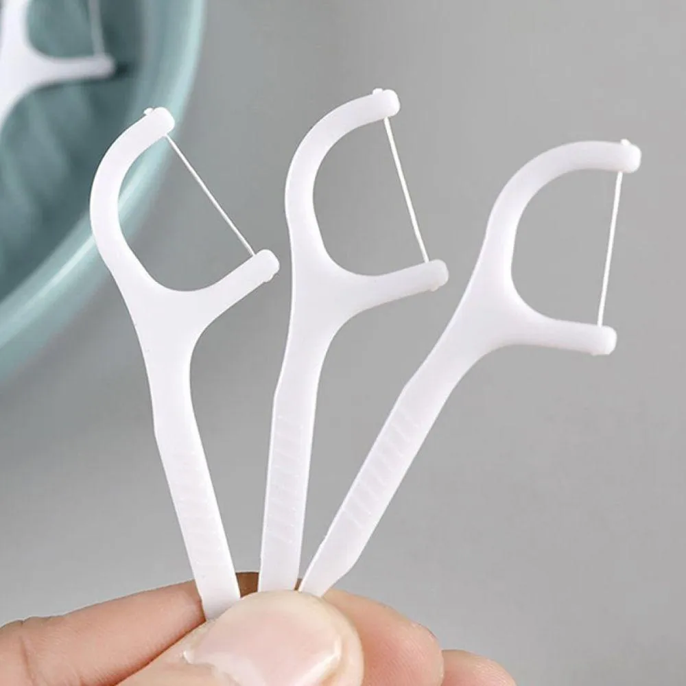 Kit 30 Fios Dentais com Cabo Haste Dental Flosser Descartável Higiene Bucal Portátil