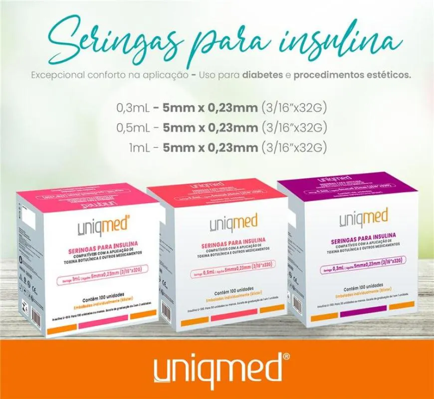 Kit 300Un Seringa para Toxina Insul.uniqmed 1,0Ml 5X0,23 32G