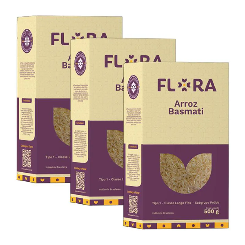 Kit 3X: Arroz Basmati Polido Flora 500G