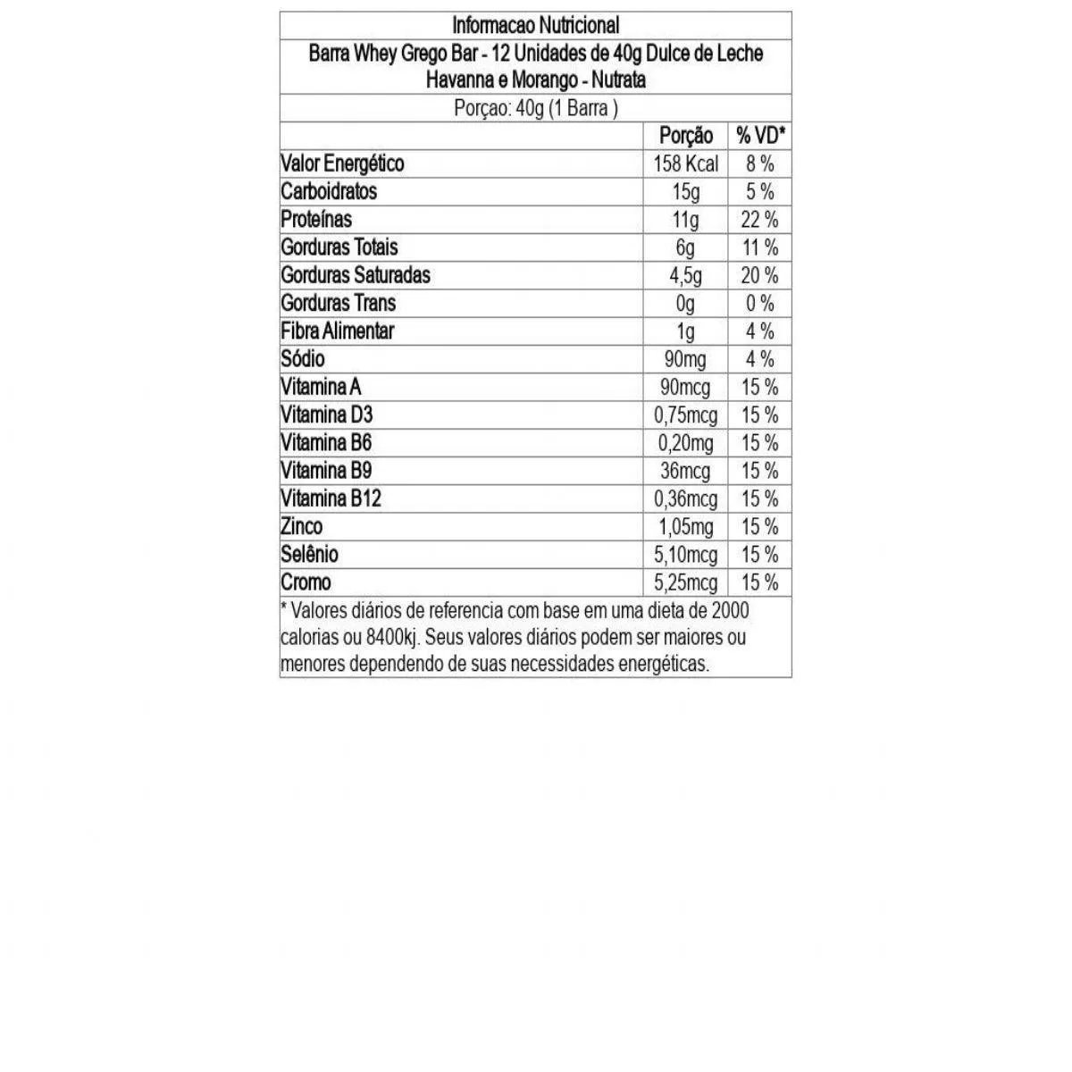 Ingredientes - Barra Whey Grego Bar - 12 Unidades de 40g Dulce de Leche Havanna e Morango - Nutrata