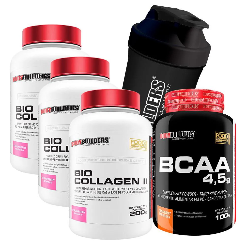 KIT 3X BIO COLLAGEN 200G + BCAA 100G + COQUETELEIRA - BODYBUILDERS