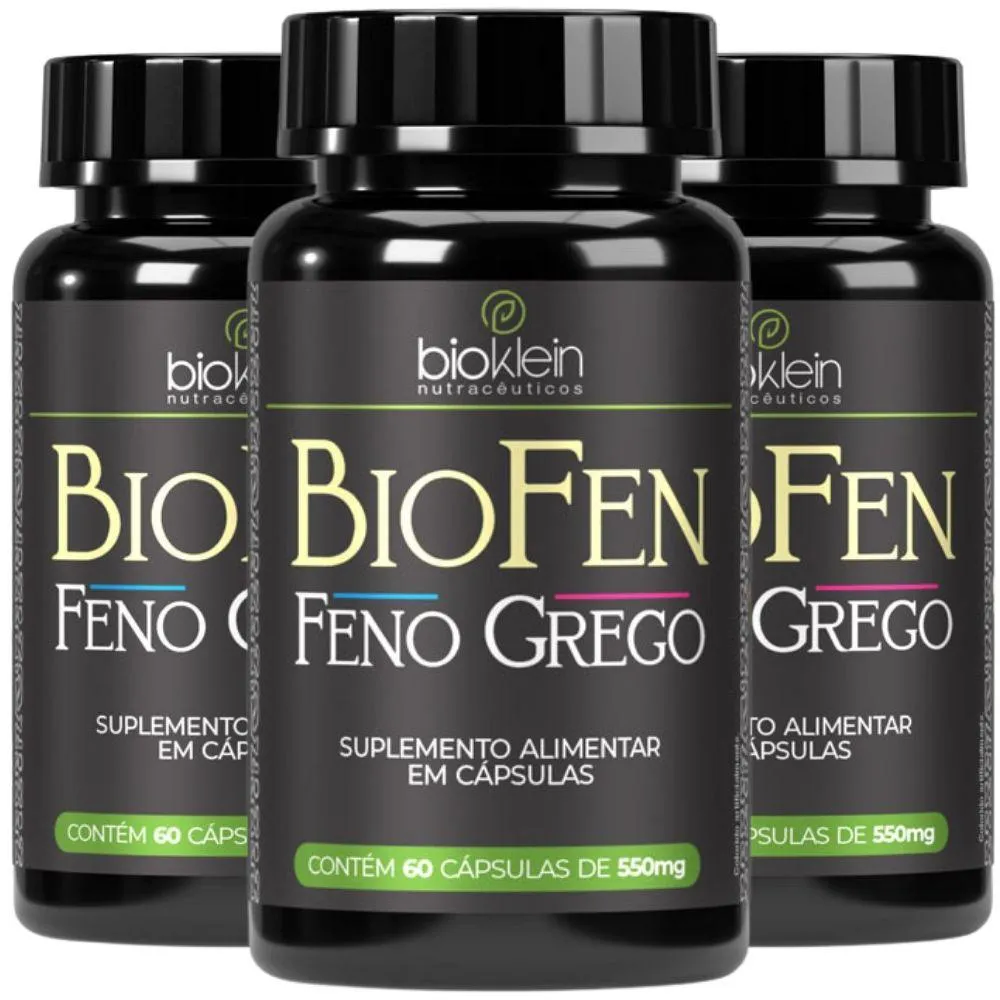 KIT com 3 unidades do BioFen Feno Grego com Saponinas da marca Bioklein com 60 cápsulas cada.