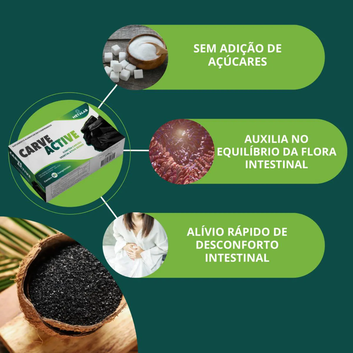 O Kit 3 Carve Active é a solução natural para quem sofre com gases, inchaço abdominal e má digestão. Sua fórmula contém ingredientes que auxiliam na eliminação dos gases intestinais, reduzem a sensação de estufamento e promovem alívio rápido do desconforto abdominal. Ideal para uso diário, ajuda a melhorar a digestão, manter o equilíbrio intestinal e trazer mais bem-estar. Com 3 unidades, você garante tratamento contínuo e resultados mais consistentes. Benefícios principais (OAs):