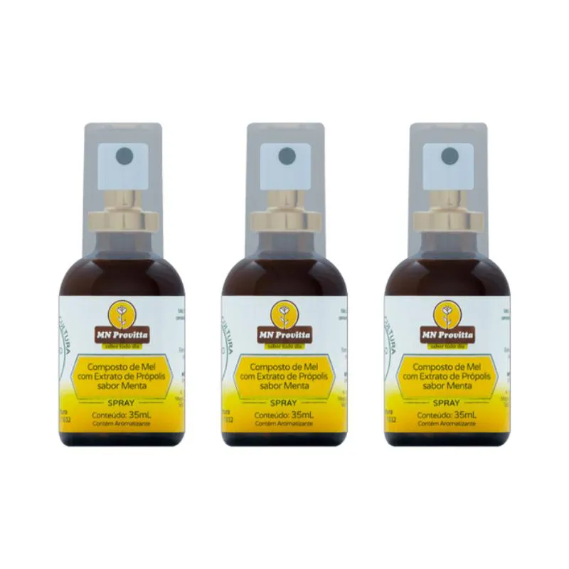 Kit 3x: Composto de Mel e Extrato de Própolis Sabor Limão e Menta Spray Mn Provitta 35ml