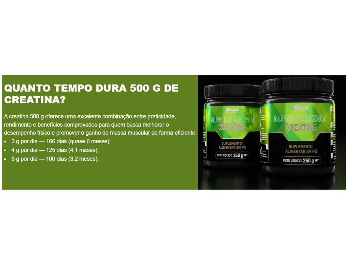 3x Potes Creatina Monohidratada 250g - Growth Supplements