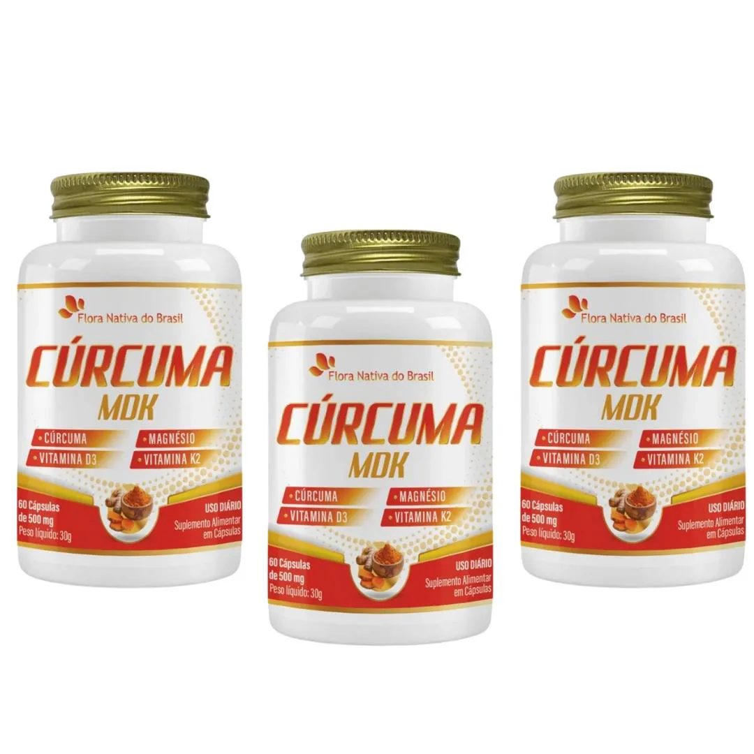 Kit 3X Cúrcuma Mdk (Magnésio, Vitamina D3 e K2) 60 Cápsulas Flora Nativa