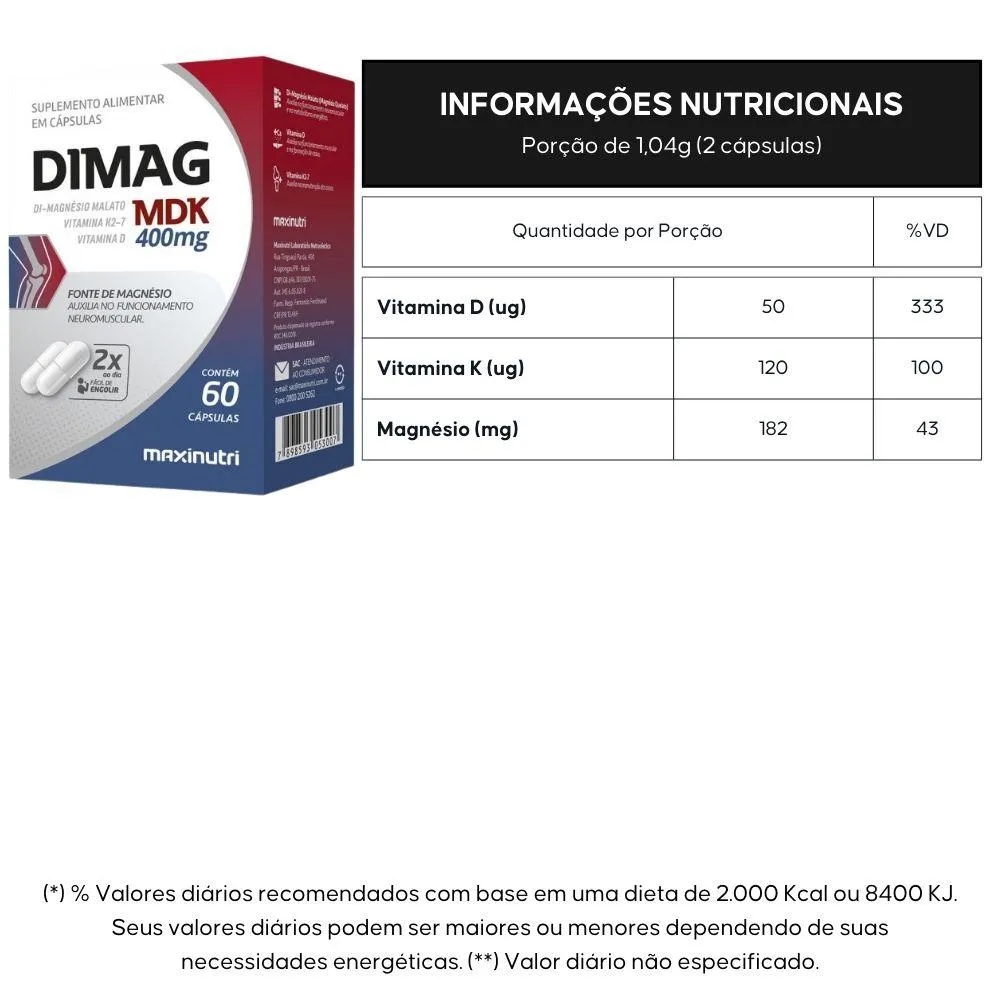 Kit 3x Dimag Mdk ( Magnésio Dimalato + Vitaminas D3 e K2) 60 cápsulas - Maxinutri