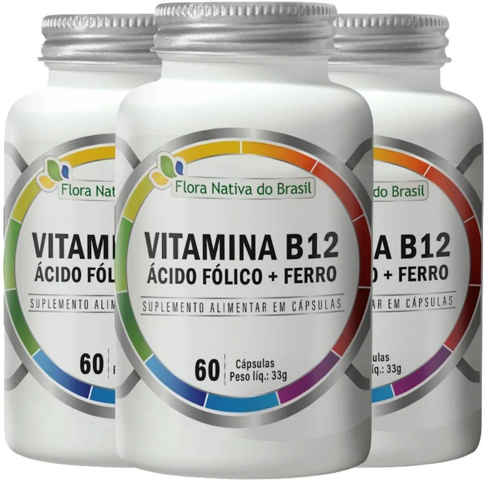 Kit 3x Ferro + Ácido Fólico + B12 60 cápsulas - Flora Nativa