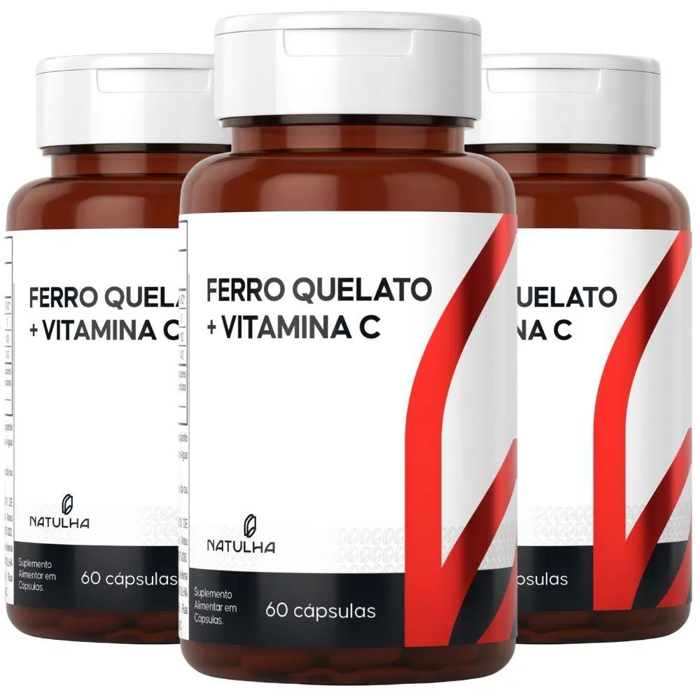 KIT com 3 unidades de Ferro Quelato + vitamina c da marca Natulha com 60 Cápsulas cada.