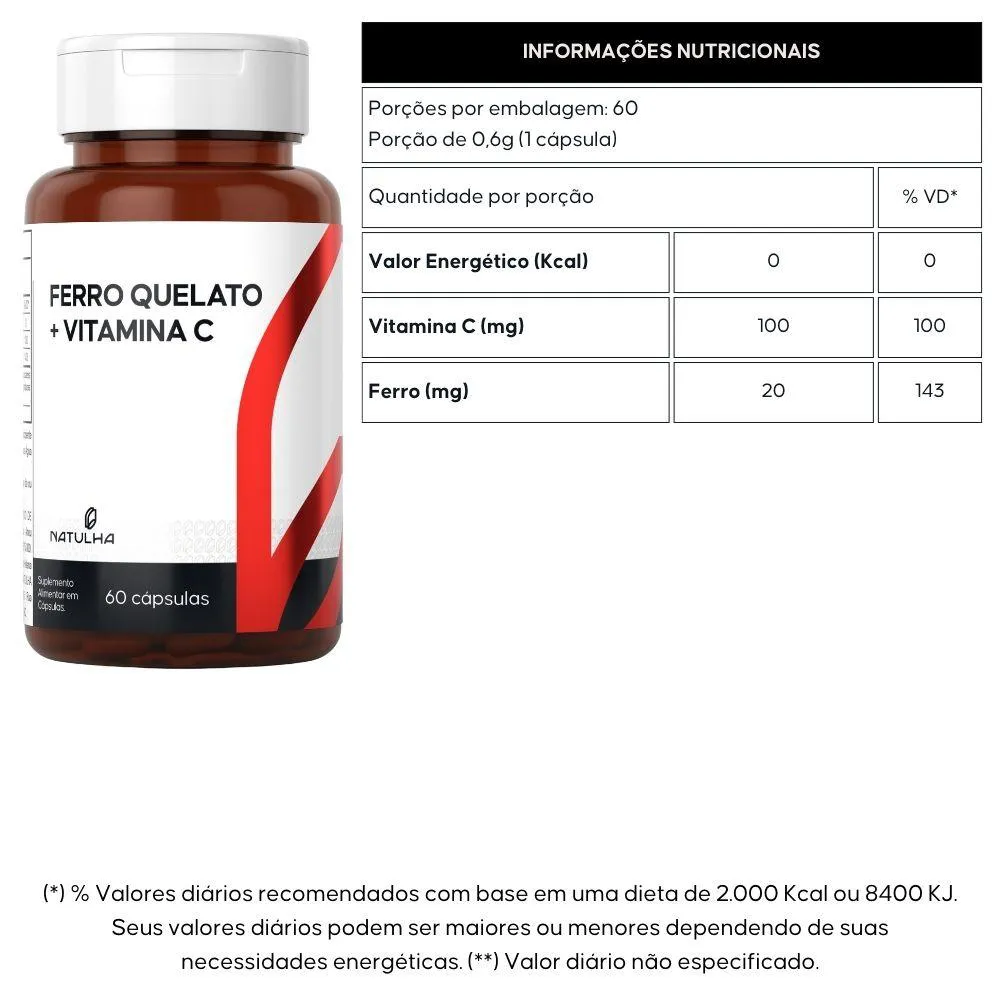- Contém ferro quelato e vitamina C.