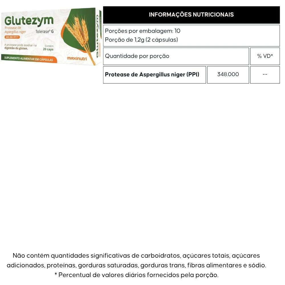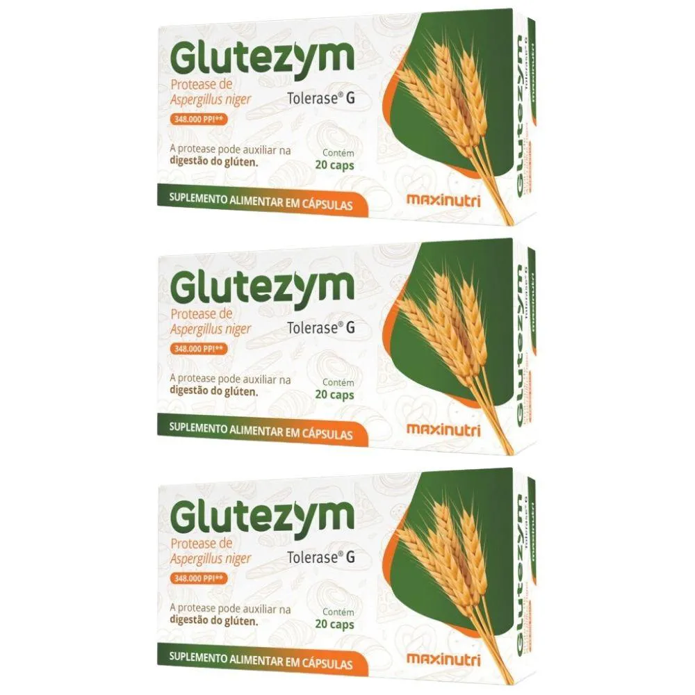Kit 3X Glutezym 348.000 (Protease) 20 Cápsulas - Maxinutri