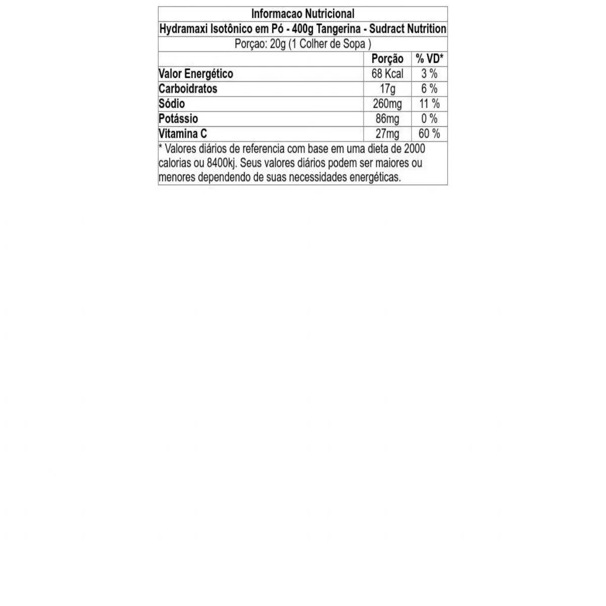 Descrição - Hydramaxi Isotônico em Pó - 400g Refil Tangerina - Sudract Nutrition