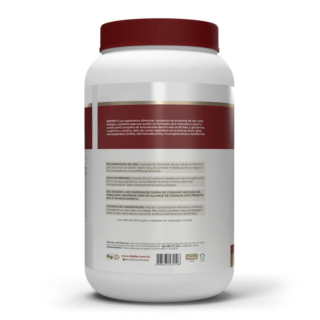 ISOFORT® é a proteína Isolada Premium da Vitafor, contém alta concentração proteica e possui uma tecnologia exclusiva de extração de proteína, proporcionando assim excelente digestibilidade e máxima absorção de nutrientes. Proteína Premium Os músculos são essenciais para a preservação de nossa saúde. Eles servem como proteção dos órgãos internos, ossos e possibilitam a mobilidade. Músculos saudáveis são o caminho para uma vida mais ativa e plena. Uma alimentação ineficiente é uma das responsáveis pela perda muscular. Na privação de nutrientes, nosso corpo utiliza os músculos como fonte geradora de energia para manter as funções corporais, e com isso ocorre a perda de músculos. Pessoas que passam por cirurgias também podem perder massa magra no pós-operatório. Outro fator natural de perda de massa é o envelhecimento. Com o passar dos anos ocorre a perda de músculos que se agrava a partir dos 50 anos. Atletas e praticantes de atividade física podem perder massa muscular pelo efeito catabólico dos músculos. Ao aumentar o gasto calórico e o estresse muscular, se a nutrição não for correta, ao invés de ganho muscular acontece a perda de massa magra. Na construção e manutenção dos ossos e músculos as proteínas são essenciais¹. Sua necessidade diária depende da massa corporal de cada indivíduo e do seu ritmo de atividade física – atividades intensas necessitam de mais consumo proteico para reconstruir os músculos afetados durante o exercício. O ingrediente proteína do soro de leite (Whey Protein) é fonte de proteína, nutriente esse que auxilia na formação dos músculos e ossos1. Não é à toa este ser um dos suplementos mais populares no mundo e consumido frequentemente por quem busca maior aporte proteico na alimentação para auxílio na formação muscular1. ISOFORT® traz em sua fórmula a proteína isolada, diminuindo da formulação concentrações de carboidratos e permitindo mais rápida absorção da proteína pelo corpo humano. ISOFORT® é a proteína Isolada Premium da Vitafor, contém alta concentração de proteína, nutriente esse que auxilia na formação dos músculos e ossos¹. Desenvolvido por um sistema inteligente de distribuição de proteína isolada e parcialmente hidrolisada do soro de leite (WPI) de excepcional qualidade e de elevada concentração (92%), o qual emprega uma tecnologia exclusiva de extração de proteína, proporcionando assim, o melhor da proteína Isolada com excelente digestibilidade e máxima absorção de nutrientes. 1As proteínas auxiliam na formação dos músculos e ossos. Isofort ou Isofort Plant Isofort possui em sua formulação a proteína isolado do soro do leite. Cada dose recomendada (30g), possui 26 gramas de proteína, sendo 6g de glutamina e 6g de BCAA. Isofort Plant possui em sua formulação proteína isolada de origem vegetal. Pessoas que não incluem em sua dieta produtos de origem animal ou tem intolerância à lactose e buscam complementar sua ingestão diária de proteína, podem suplementar com nossa proteína vegana. Cada porção de Isofort Plant (30g), oferece 24 gramas de proteína sendo 4,1g de BCAA, além de ser enriquecida com vitamina B12, nutriente que dietas veganas e vegetarianas tem ausência. Benefícios do consumo: