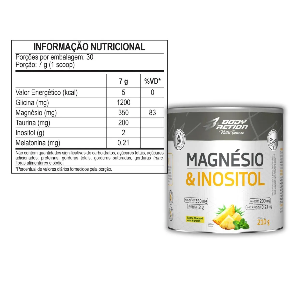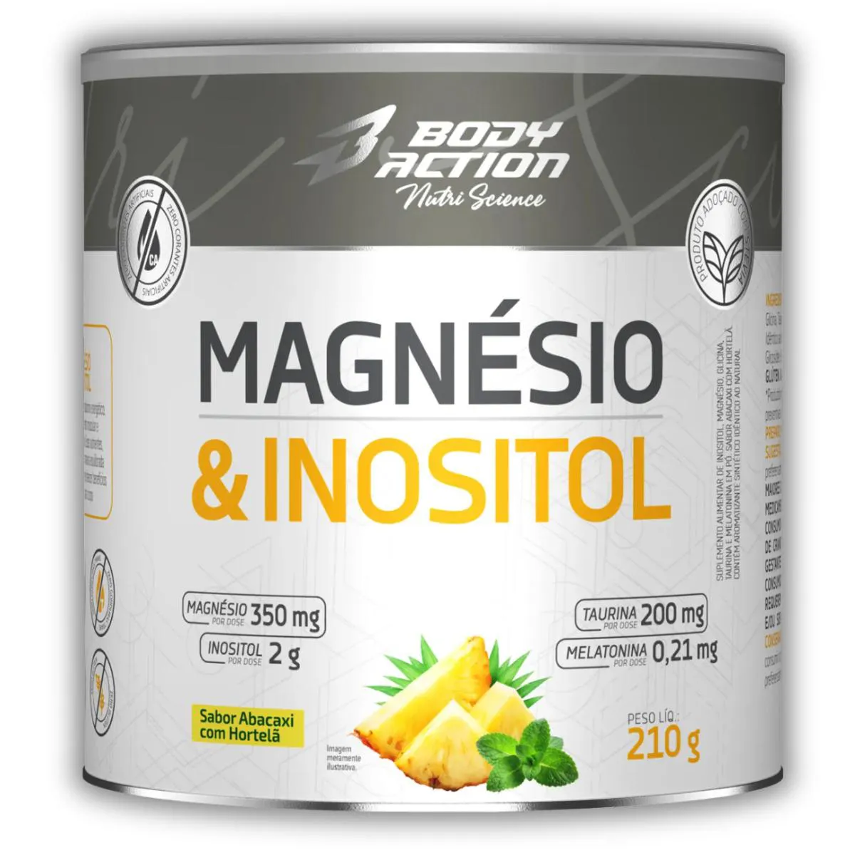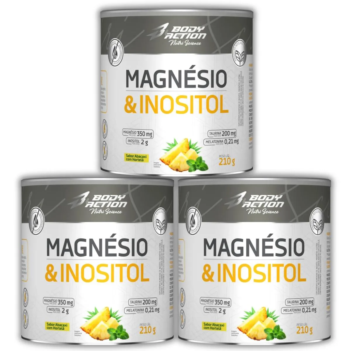 Kit 3x Magnésio e Inositol 210g Body Action – Abacaxi com Hortelã