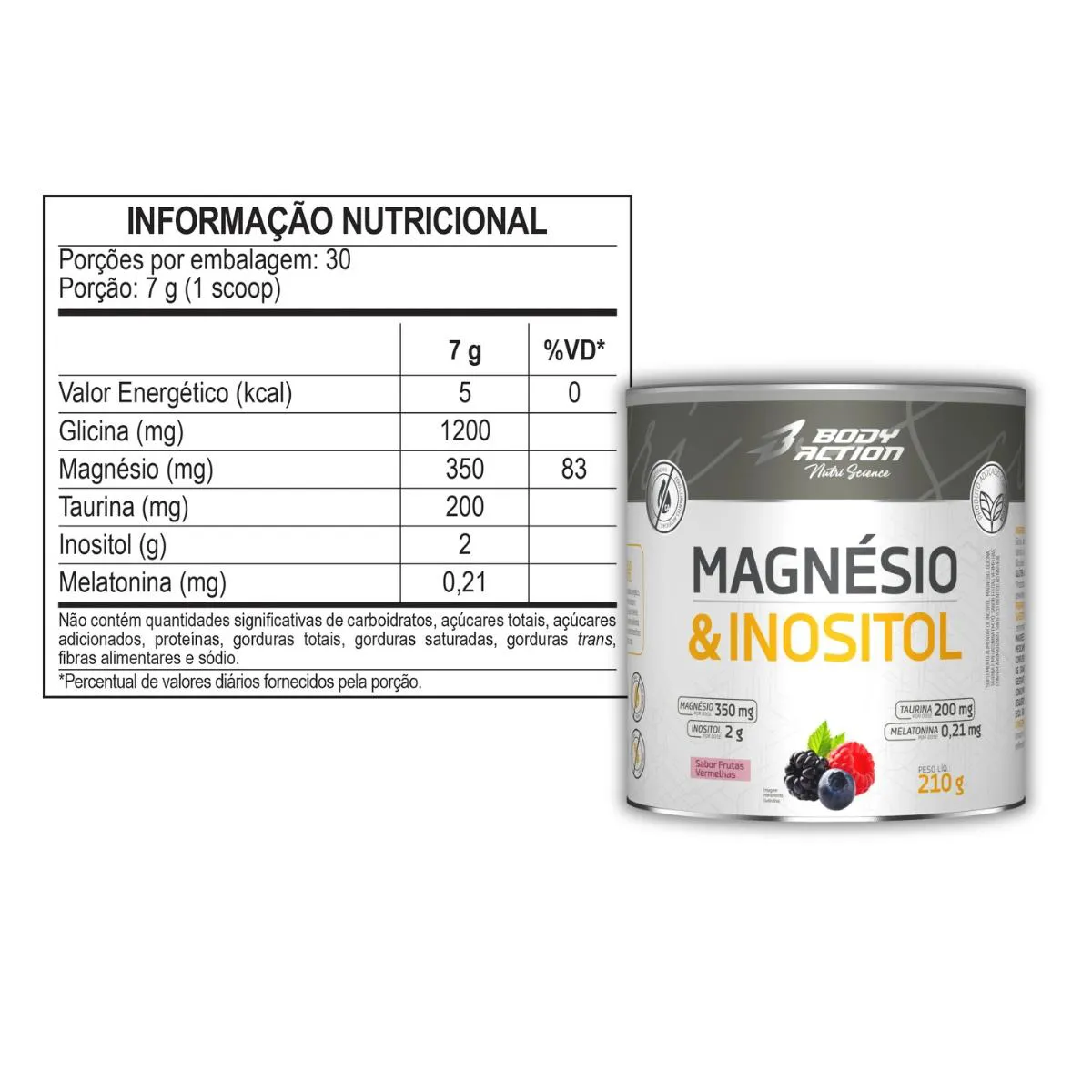 Kit 3x Magnésio e Inositol 210g Body Action – Frutas Vermelhas