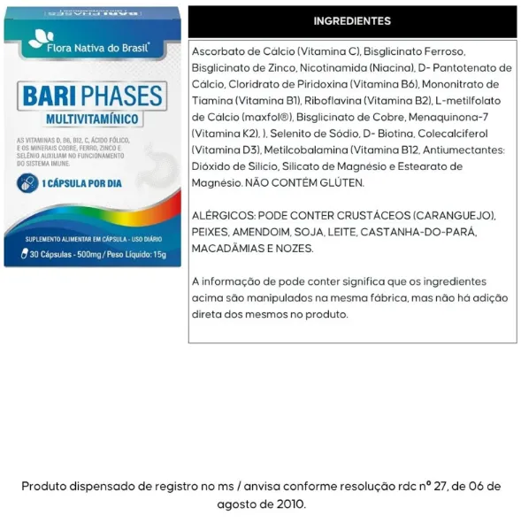 KIT 3X Bari Phases Multivitamínico 30 cápsulas - Flora Nativa