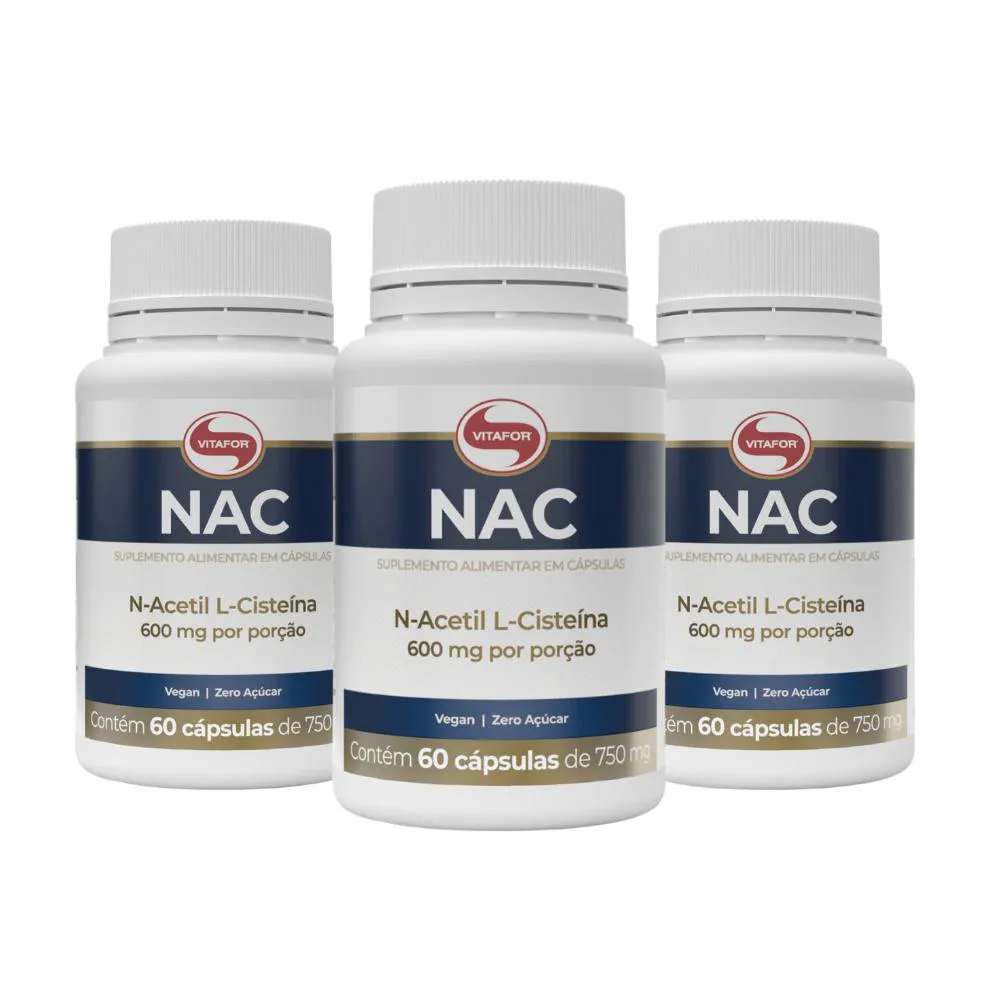Kit 3x Nac N-acetil L-cisteína 600mg 60 Cápsulas. Vitafor