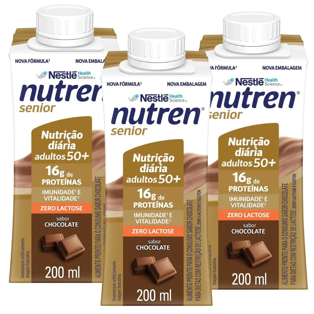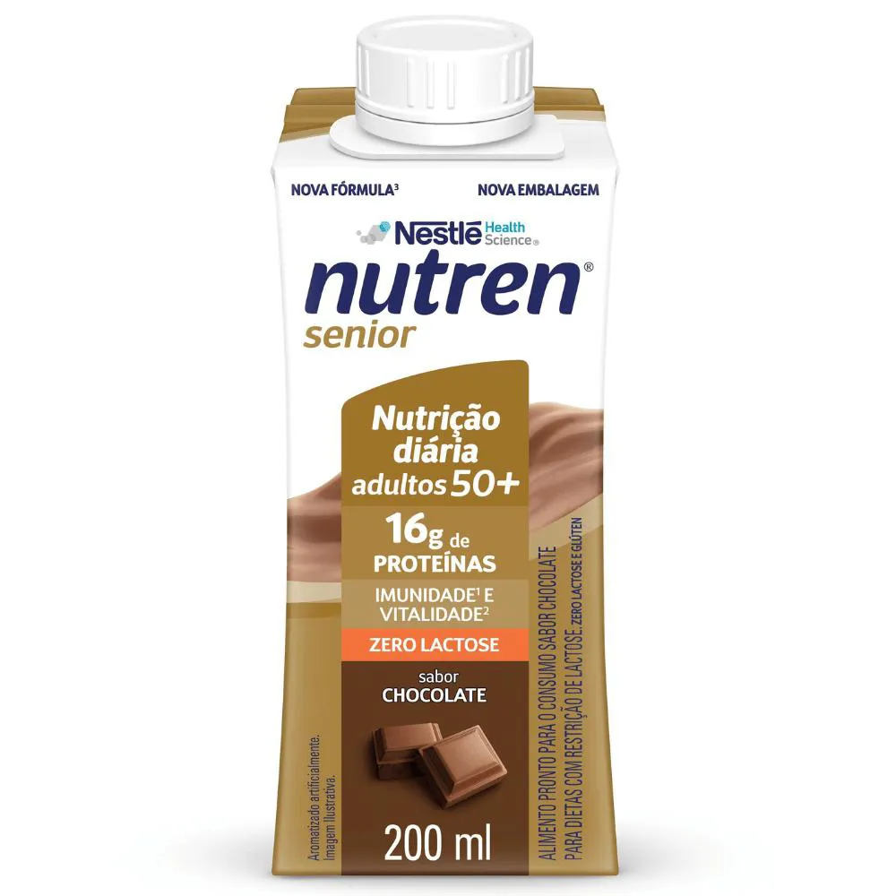O Nutren Senior Pronto 200ml é um suplemento nutricional desenvolvido especialmente para adultos acima de 50 anos que desejam manter força, energia e qualidade de vida no dia a dia. Sua fórmula contém 16g de proteína por unidade, além de cálcio e vitamina d, nutrientes fundamentais para a manutenção da massa muscular e saúde óssea. Também oferece 19 vitaminas e minerais que auxiliam no funcionamento do organismo, incluindo vitaminas do complexo B, vitamina c e zinco. Prático e pronto para consumo, não precisa de preparo. Basta abrir e beber. Ideal para complementar a alimentação, especialmente para quem possui rotina corrida, baixa ingestão proteica ou precisa reforçar a nutrição diária. Uma solução equilibrada, prática e nutritiva para apoiar um envelhecimento mais ativo e saudável. • ? 16g de proteína por unidade: ajuda na manutenção e recuperação da massa muscular, essencial após os 50 anos. • ? Cálcio + Vitamina D: contribuem para a saúde dos ossos e músculos, auxiliando na mobilidade e qualidade de vida. • ?️ 19 vitaminas e minerais: fórmula completa com vitaminas do complexo B, vitamina C e zinco para suporte imunológico e energia diária. • ? Pronto para beber – praticidade total: embalagem Tetra Slim 200ml, ideal para levar na bolsa, consumir entre refeições ou complementar a alimentação. • ? Zero lactose e sem glúten: opção adequada para intolerantes à lactose (não é isento de leite). Esse produto não é um Medicamento, não tem como objetivo auxiliar no tratamento, cura ou combate de qualquer doença