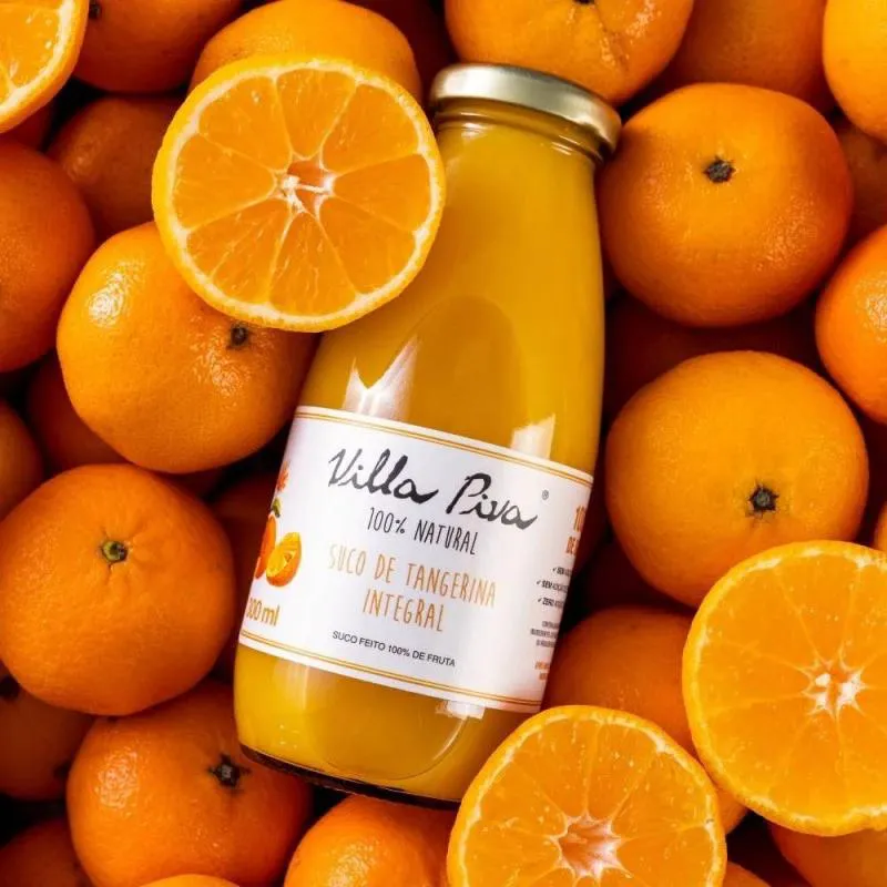 O Suco de Tangerina Integral Sem Açúcar Villa Piva 300ml é produzido somente com 2,2kg de tangerina frescas por litro, sem elementos artificiais, corantes, açúcares ou conservantes.