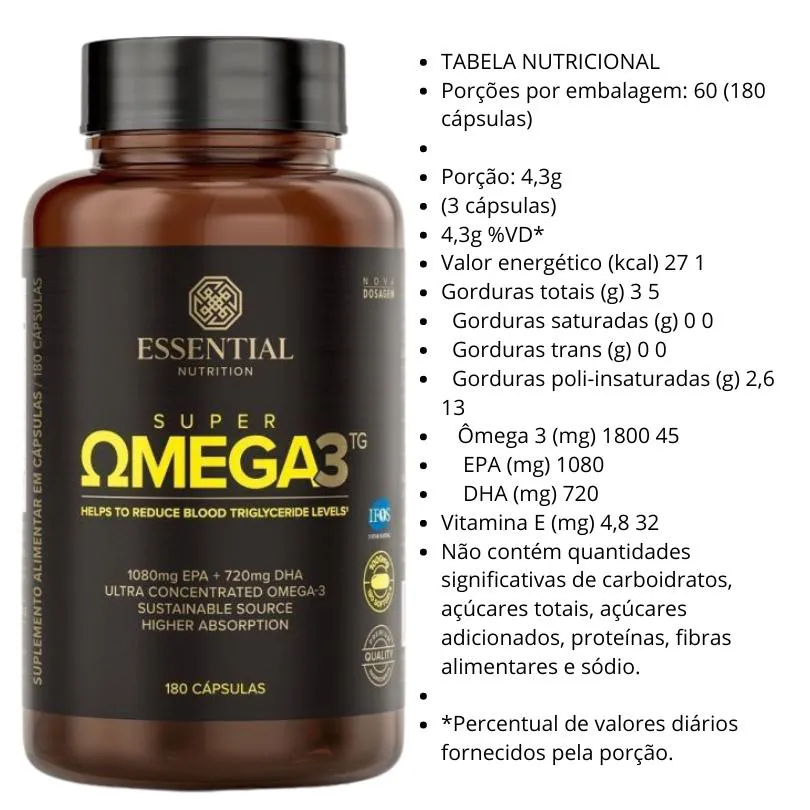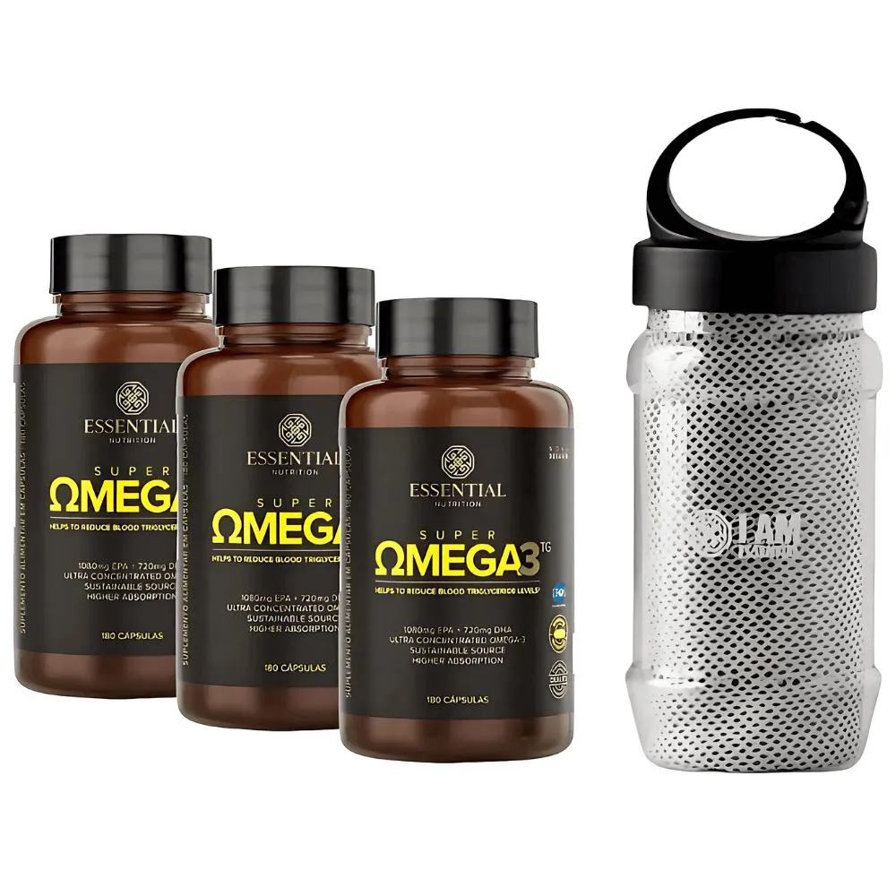 Kit 3X Super Omega 3 Tg (180 Caps Cada) 1000Mg + Brinde - Essential Nutrition