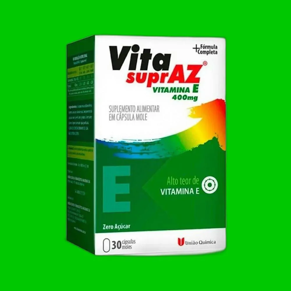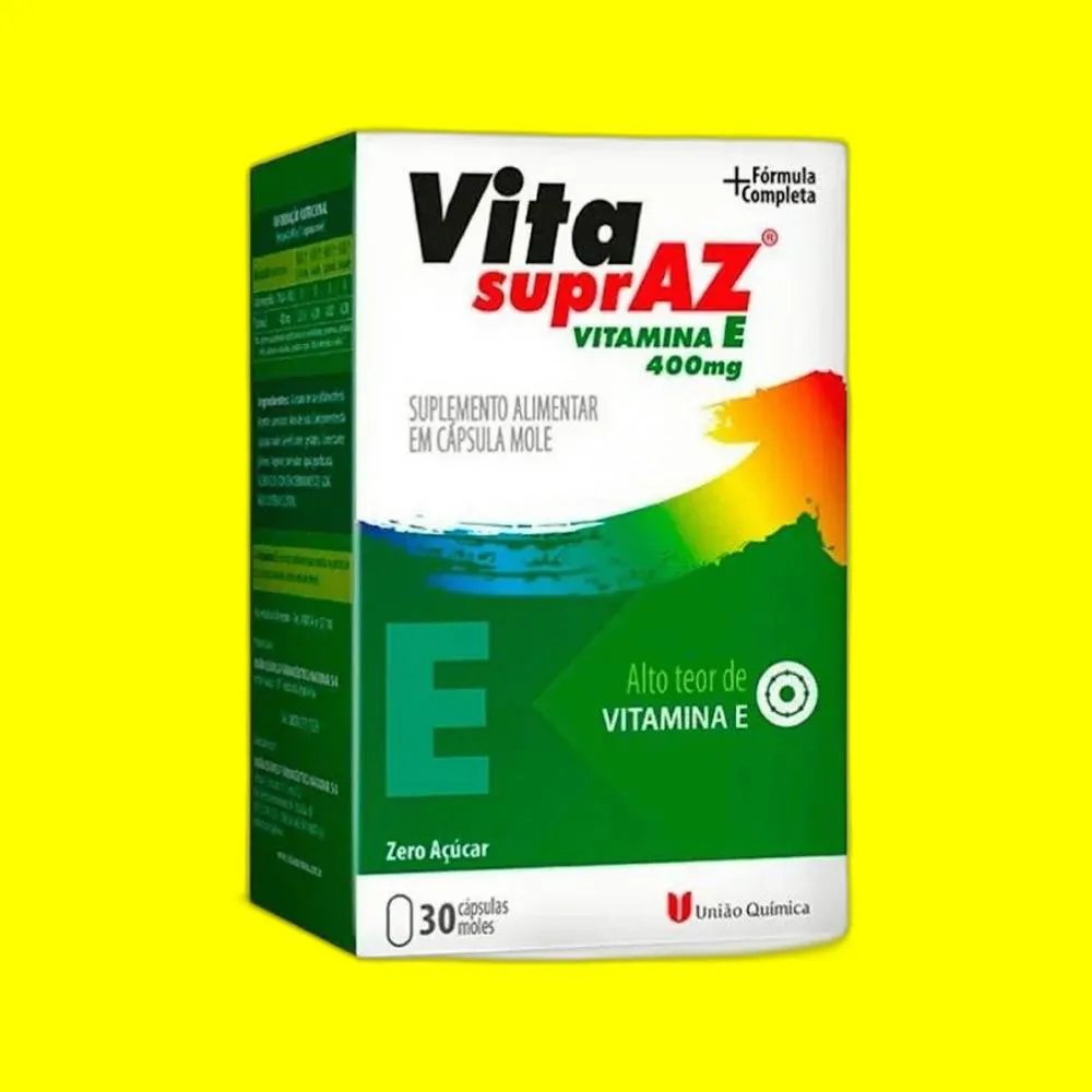 VitaSuprAZ Vitamina E é um suplemento alimentar desenvolvido para fornecer uma alta concentração de vitamina E (400mg por cápsula), um potente antioxidante que contribui na proteção das células contra os danos causados pelos radicais livres. Sua ação antioxidante contribui para o bom funcionamento do organismo, além de contribuir na manutenção da saúde da pele, cabelos e unhas. O produto é apresentado em cápsulas moles, facilitando a ingestão diária.