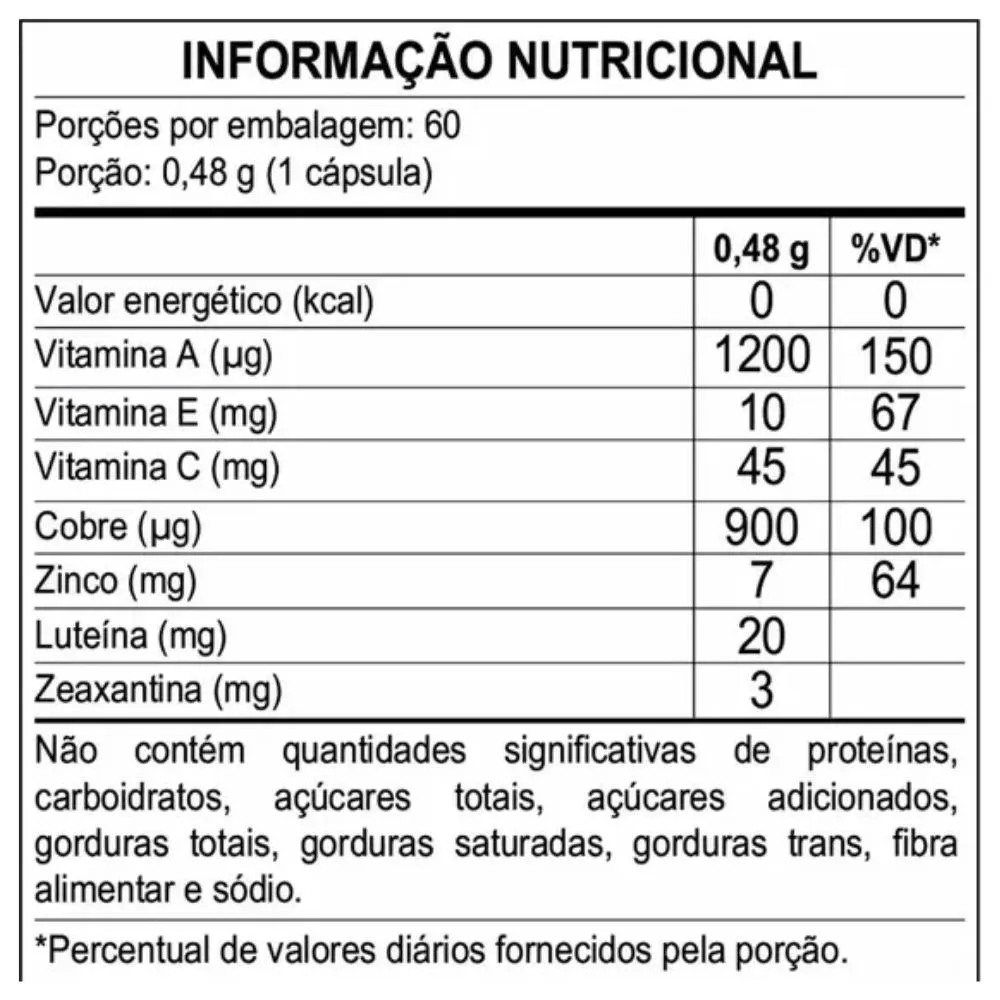 Indicado para adultos que desejam proteção visual, apoio antioxidante e manutenção da saúde ocular. Esse produto não é um Medicamento, não tem como objetivo auxiliar no tratamento, cura ou combate de qualquer doença