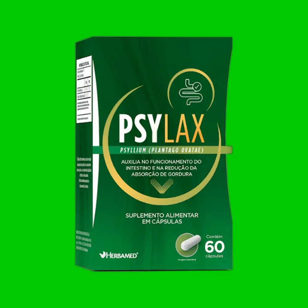 Suplemento alimentar à base de psyllium (Plantago ovata), uma fibra alimentar que contribui no funcionamento do intestino.