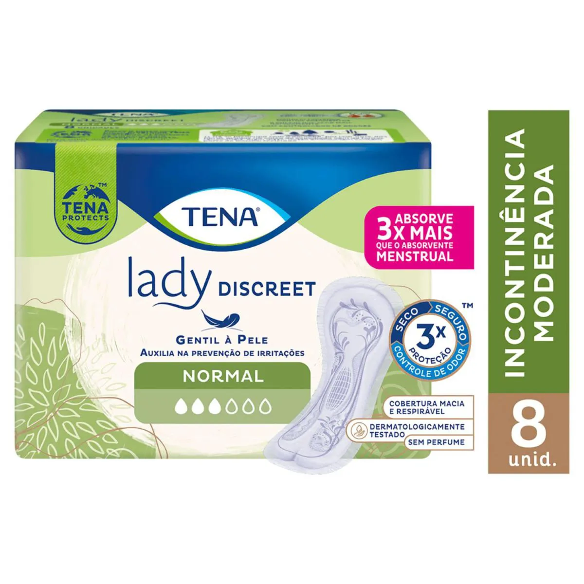 Kit C4 Abs Tena Lady Discreet Normal C8 Neste produto está sendo enviado 4(quatro) unidades do Abs Tena Lady Discreet Normal C8 Abs Tena Lady Discreet Normal C8 O absorvente TENA Lady Discreet Normal com 8 unidades foi desenvolvido especialmente para mulheres que buscam proteção eficiente, conforto e discrição contra perdas leves de urina. Com tamanho maior que absorventes comuns e formato anatômico, ele se adapta perfeitamente ao corpo, oferecendo mais cobertura, segurança e liberdade para o dia a dia. Sua tecnologia avançada de absorção rápida captura o líquido instantaneamente, ajudando a manter a pele seca e protegida por mais tempo. Além disso, conta com sistema de controle de odores que neutraliza possíveis cheiros, proporcionando sensação prolongada de frescor e bem-estar. Seu material é macio e confortável (“fofinho”), evitando irritações e garantindo uso agradável ao longo do dia. Ideal para uso diário, o TENA Lady Discreet Normal é discreto, não marca na roupa e permite que você realize suas atividades com mais confiança, tranquilidade e segurança. Diferenciais do produto: · Tamanho maior que absorventes comuns: mais cobertura e proteção · Formato anatômico: melhor ajuste ao corpo feminino · Toque macio e confortável: sensação suave durante o uso · Tecnologia de rápida absorção: mantém a pele seca por mais tempo · Controle de odores: ajuda a neutralizar cheiros indesejados · Discreto: não marca na roupa e pode ser usado com tranquilidade · Ideal para perdas leves de urina: segurança no dia a dia · Uso prático: fácil de aplicar e remover Modo de uso: