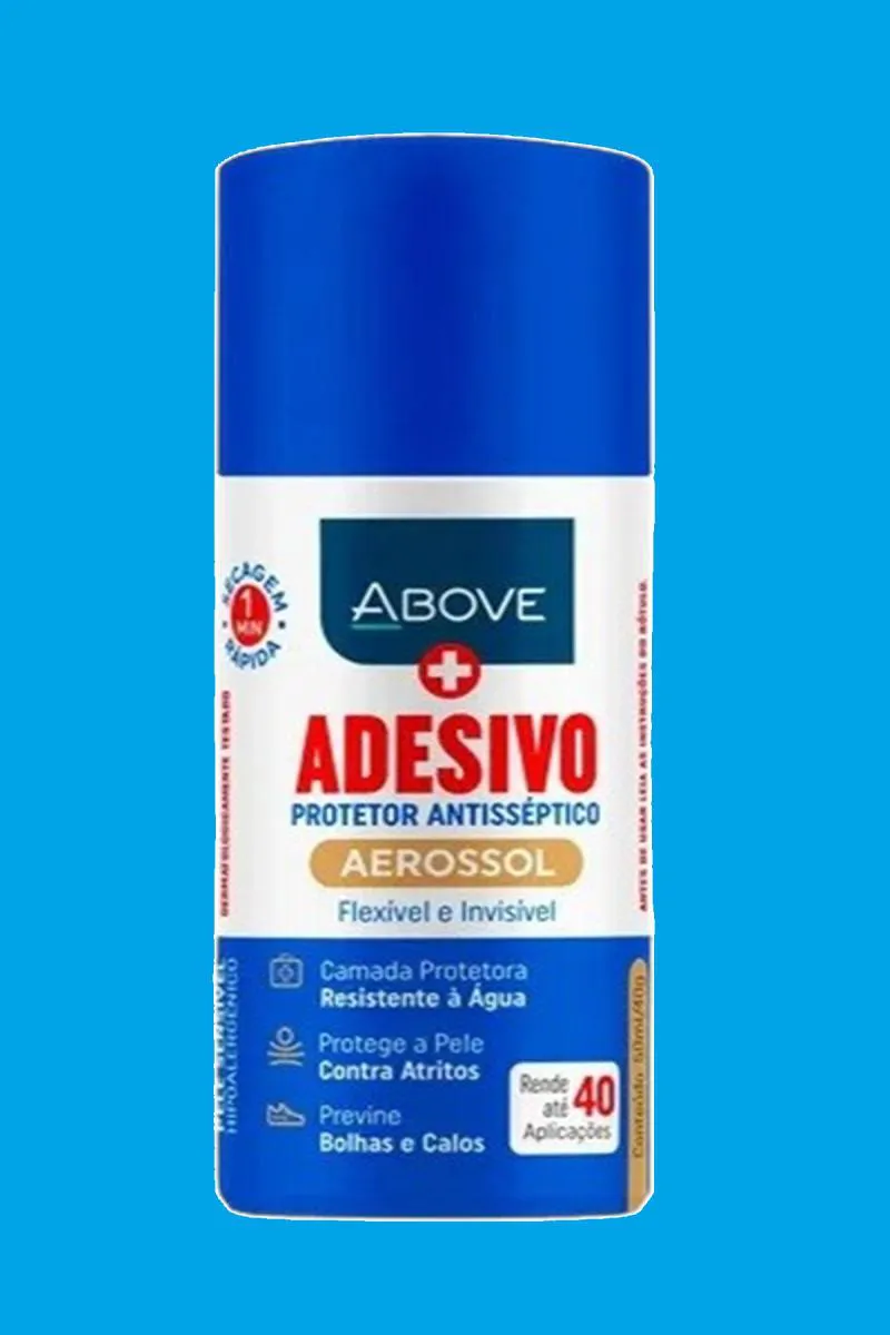 O adesivo protetor antisséptico Above é um spray de ação antisséptica que forma uma película protetora flexível e resistente à água para proteger a pele. Ideal para corredores, atletas, ciclistas e praticantes de atividades ao ar livre, este adesivo pode ser utilizado em pequenas áreas de difícil acesso e também para evitar a formação de bolhas e calos nas regiões de atrito dos pés.