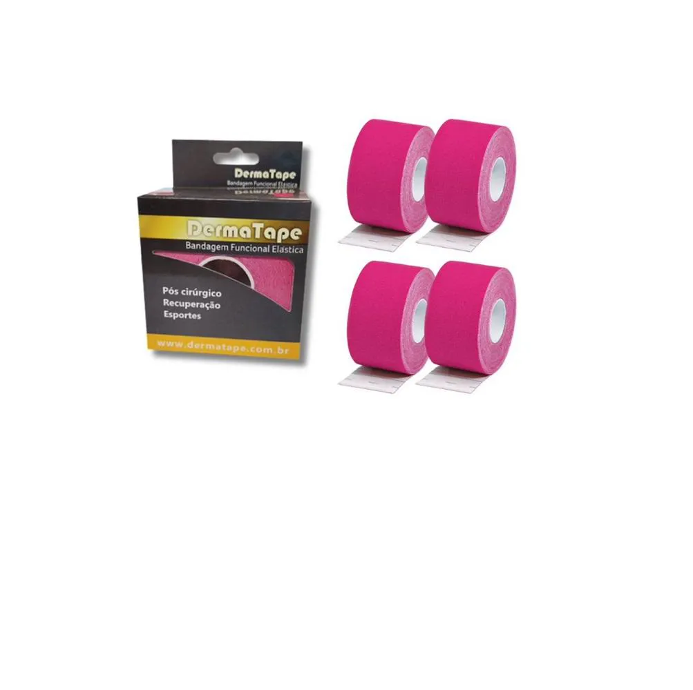 Kit 4 Bandagem Funcional Elástica Derma Tape Bioland Rosa