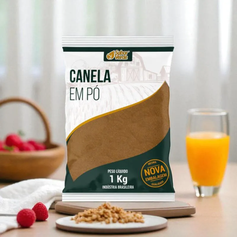 A Canela Moída 1kg Sabor Verde é uma especiaria natural obtida a partir da moagem da casca da canela (Cinnamomum sp.), resultando em um pó fino de coloração marrom-avermelhada e aroma adocicado. Amplamente utilizada na culinária, é ideal para realçar o sabor de diversas receitas doces e salgadas, como bolos, sobremesas, cafés, chás, carnes e molhos.Composição: