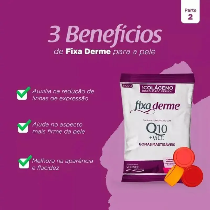 É um suplemento alimentar de Colágeno Hidrolisado Verisol em gomas mastigáveis. Sua fórmula contém tecnologia alemã, associada à cosmética francesa, e é enriquecida com Coenzima Q10 e vitamina c.