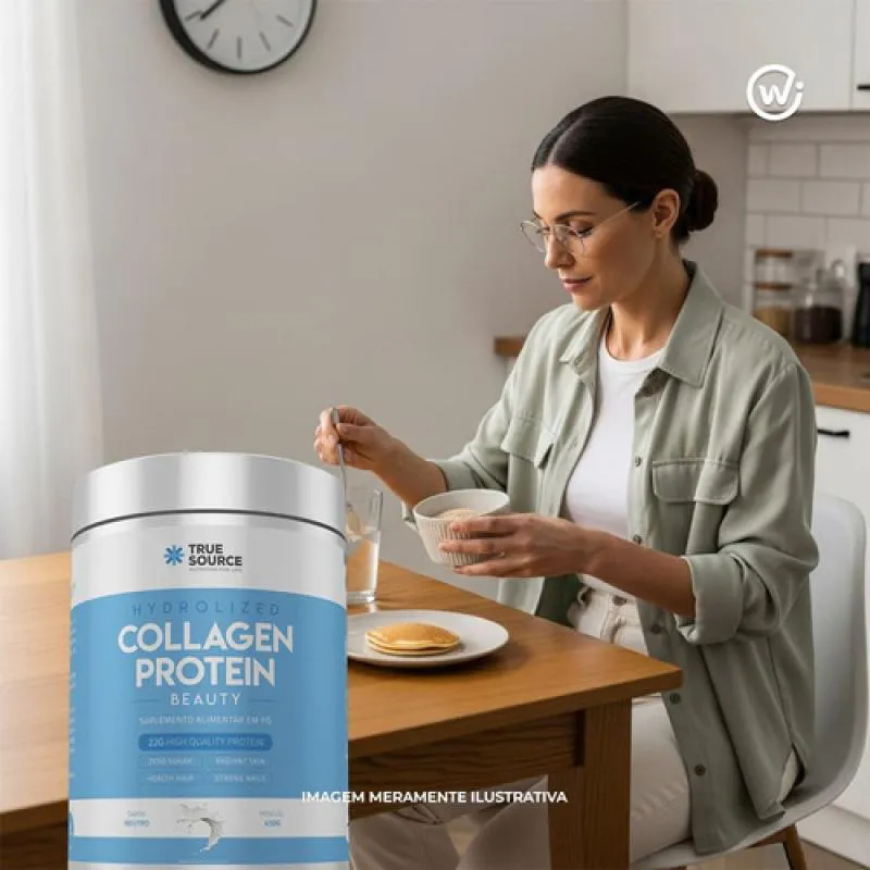 O Collagen Protein Neutro da True Source é um suplemento proteico premium que combina colágeno hidrolisado com peptídeos bioativos Verisol®. Sua fórmula foi desenvolvida para ser limpa, hipoalergênica e de fácil digestão, com adoçantes naturais (estevia e taumatina), sem açúcar, glúten ou lactose.