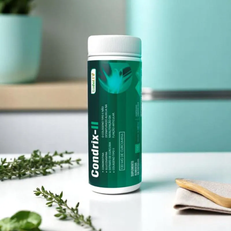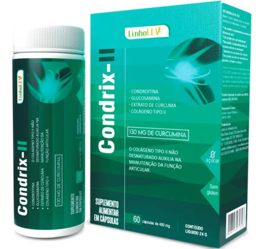 O Condrix II da Linho Lev é um suplemento alimentar desenvolvido para promover a saúde das articulações e ossos. Sua fórmula avançada combina ingredientes que auxiliam na manutenção da flexibilidade, mobilidade e conforto articular, sendo ideal para pessoas que buscam suporte nutricional para as articulações. Composição:- Ingredientes Ativos: Cloridato de glucosamina, Sulfato de Condroitina, Extrato de rizomas de Cúrcuma longa, Colageno tipo IInão desnaturado.