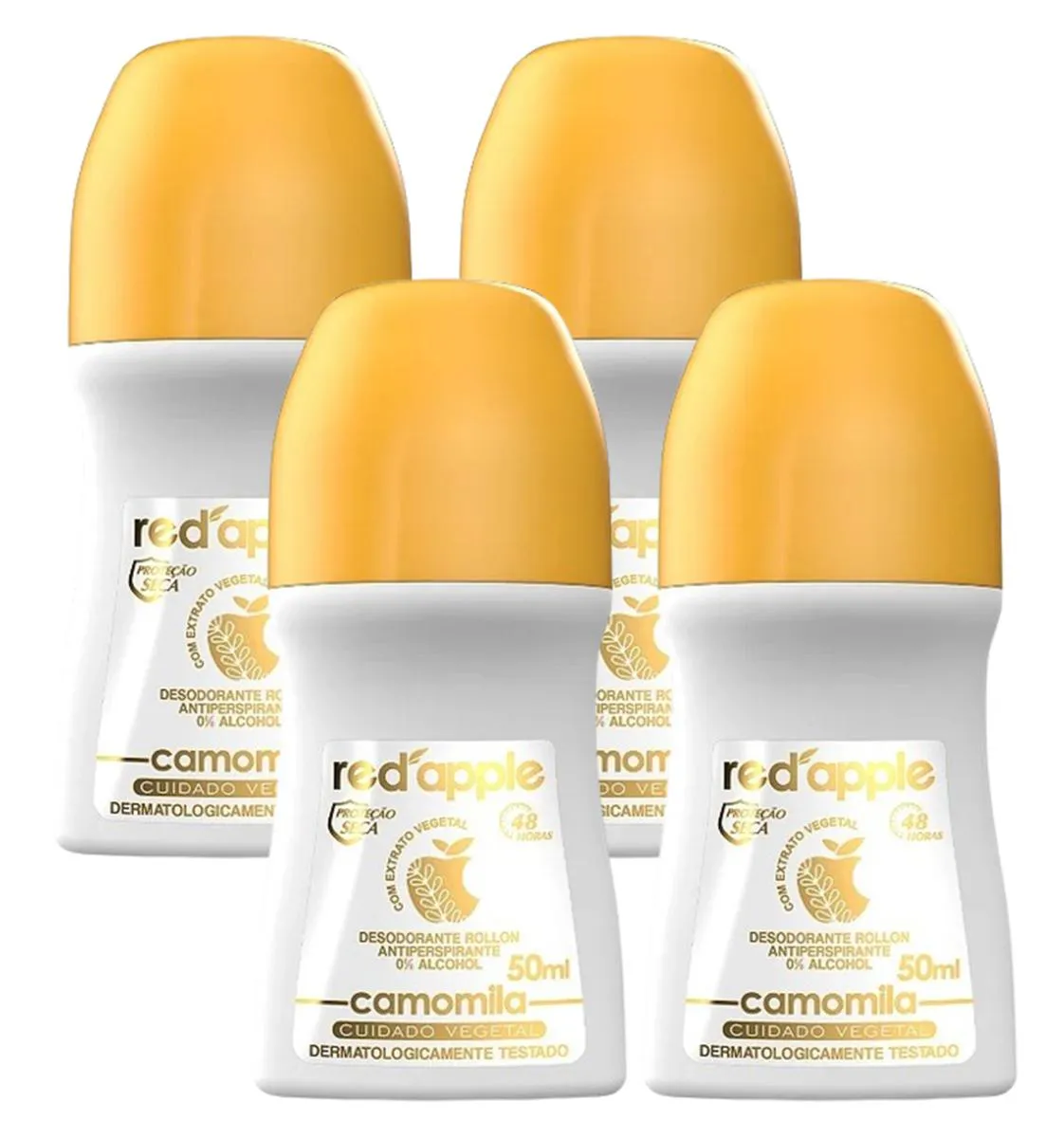 Kit 4 Desodorante Red Apple Roll On Camomila 50Ml