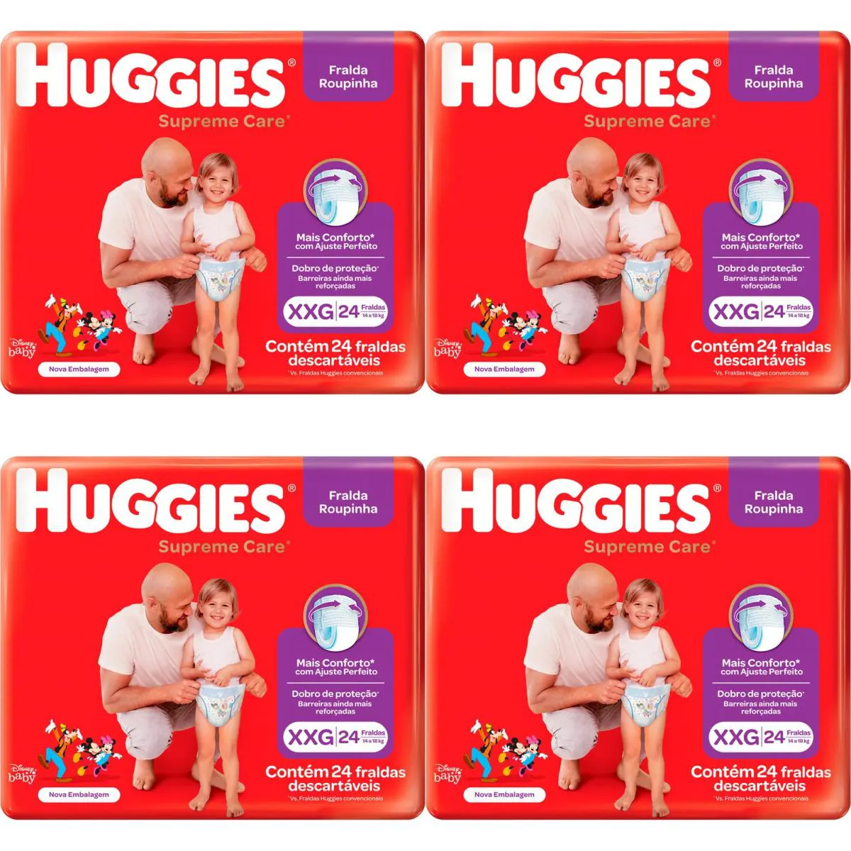 KIT 4 FRALDAS HUGGIES ROUPINHA SUPREME CARE XXG 24 UNIDADES CADA